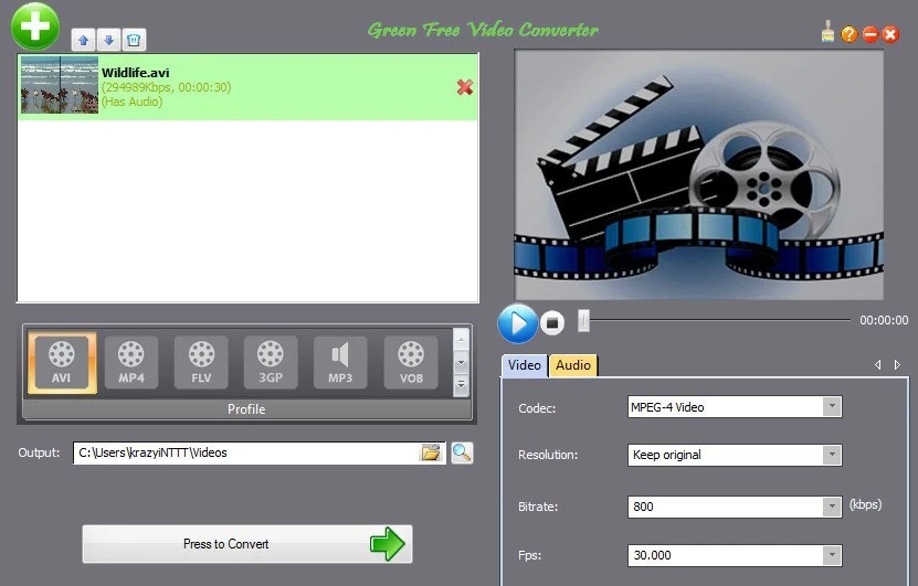 Green Free Video Converter Programme disponible dans d\'autres langues